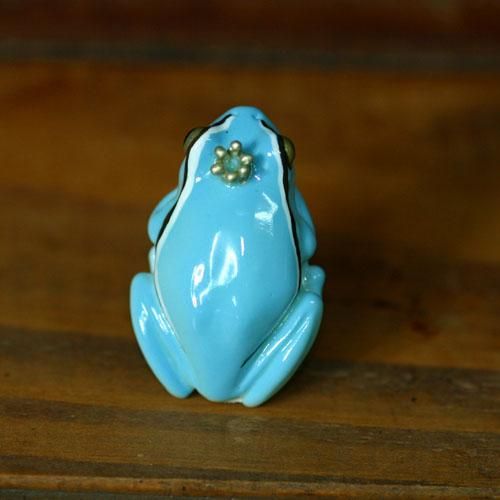 王冠をかぶった青い大きめアマガエルのバッヂです。