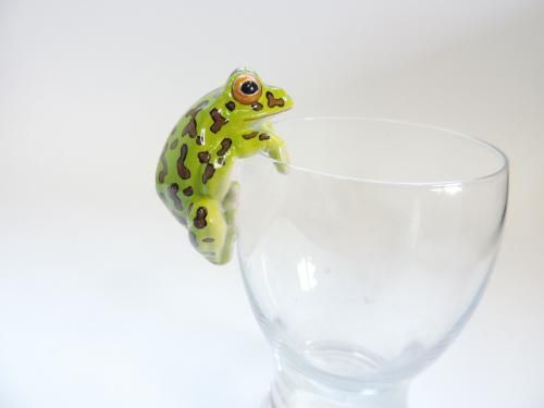かわいいモリアオガエルが、あなたの日常を癒してくれます。コップにひっかけてデスクやキッチンに置いておけば、いつでもその愛らしい姿を眺めることができます。疲れた時やストレスがたまった時の癒しにいかがでしょうか。